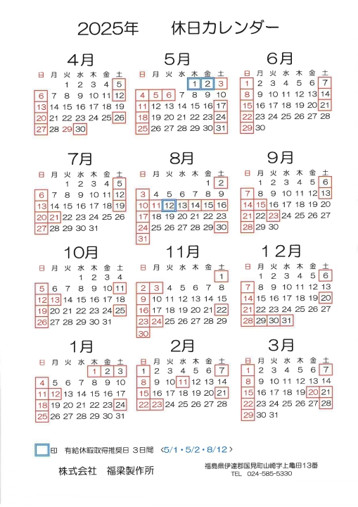 2025年度 会社カレンダー(4月はじまり)